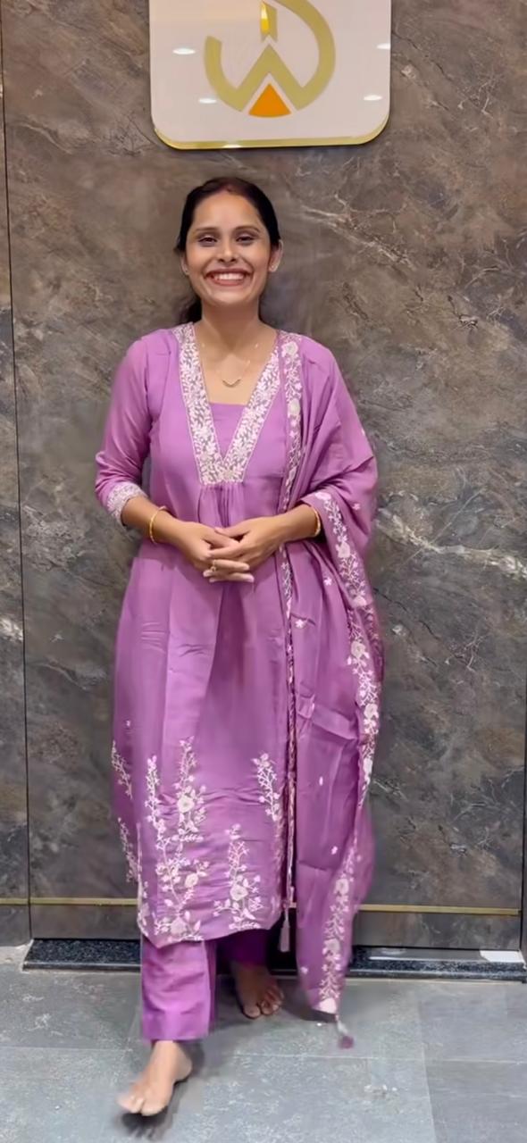 full gher dress with thred work 3 pees dress size-