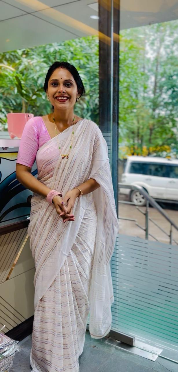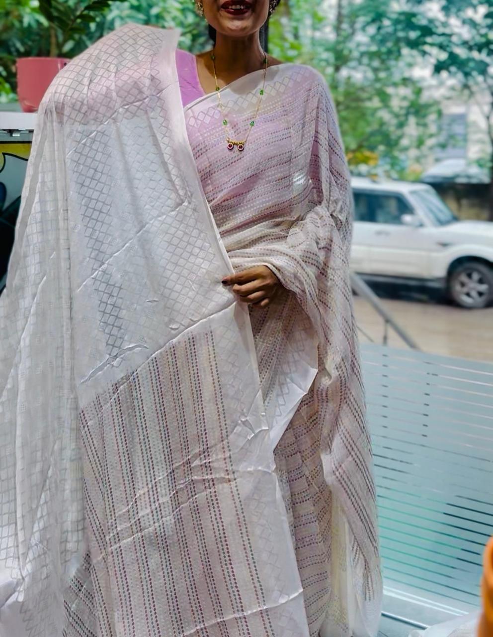 white Brasso saree with lining buttee self blouse pees